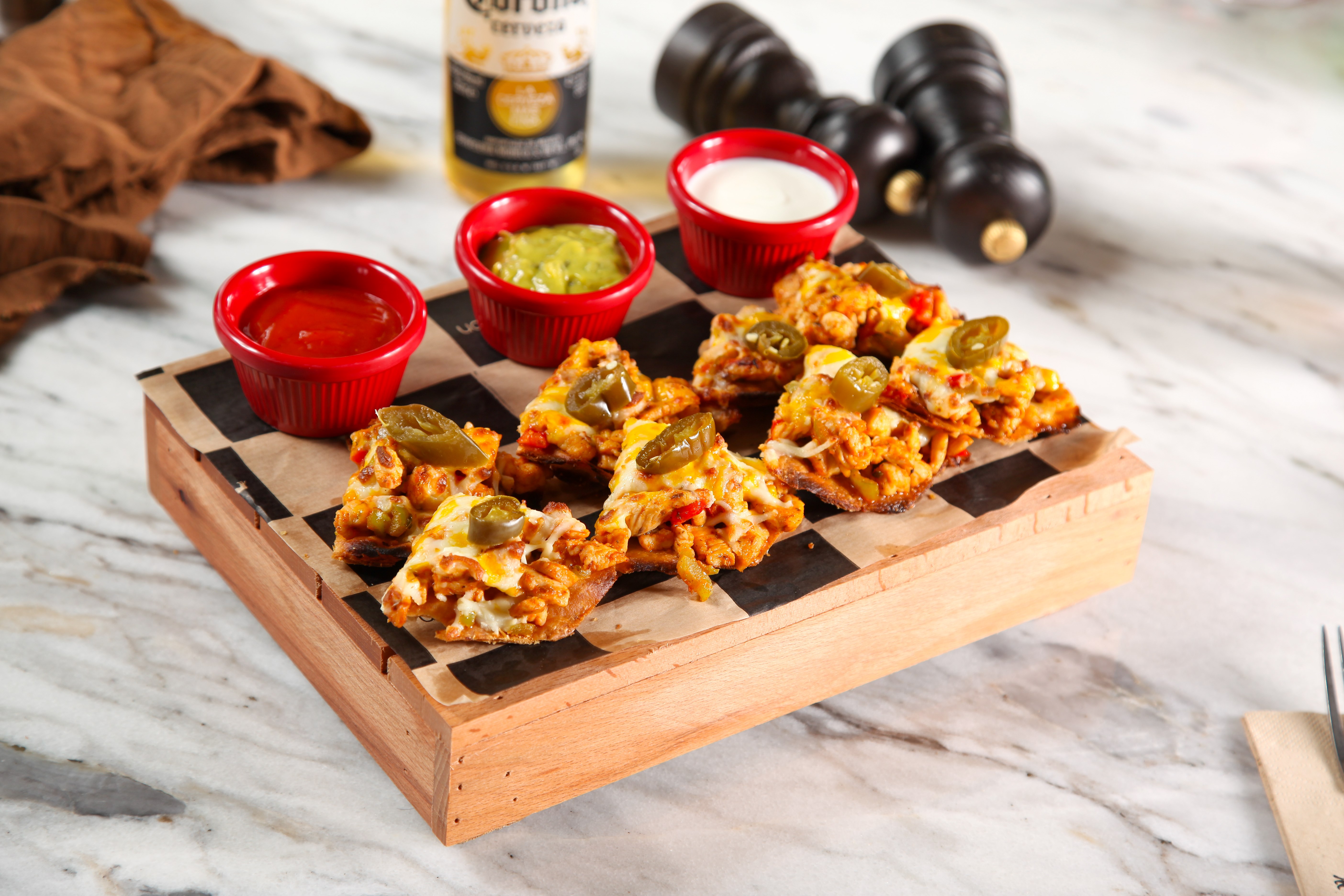 484,00cheddar peynri karamelize soğan renkli biberler jalepeno biberi meksika fasulyesi sour cream salsa guacamole dip sos taze yeşillik ile