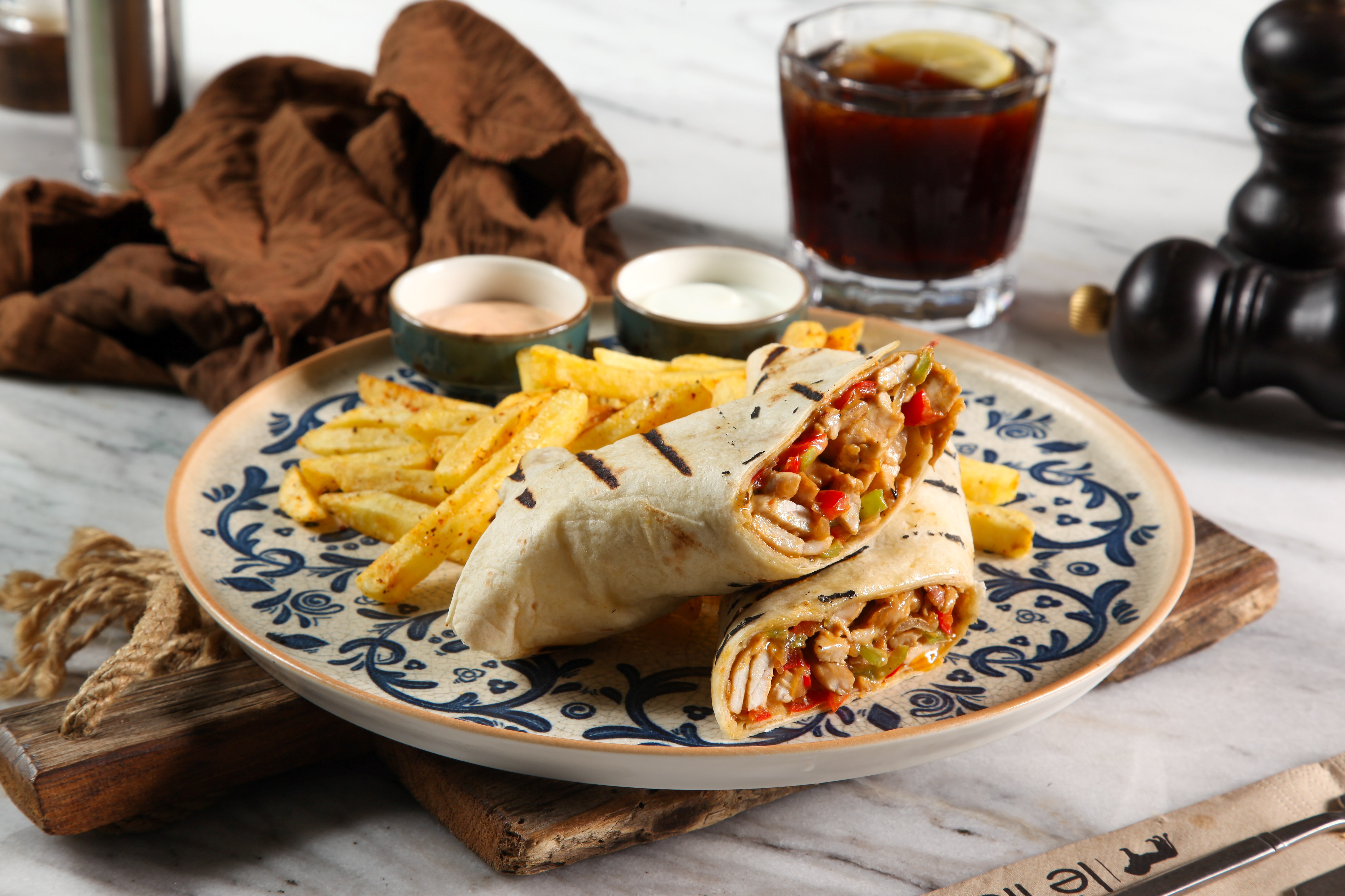 452,00taco çeşnili tavuk cheddar peyniri taze yeşillikler mantar renkli biberler karamelize soğan mısır kajun baharatlı patates tava