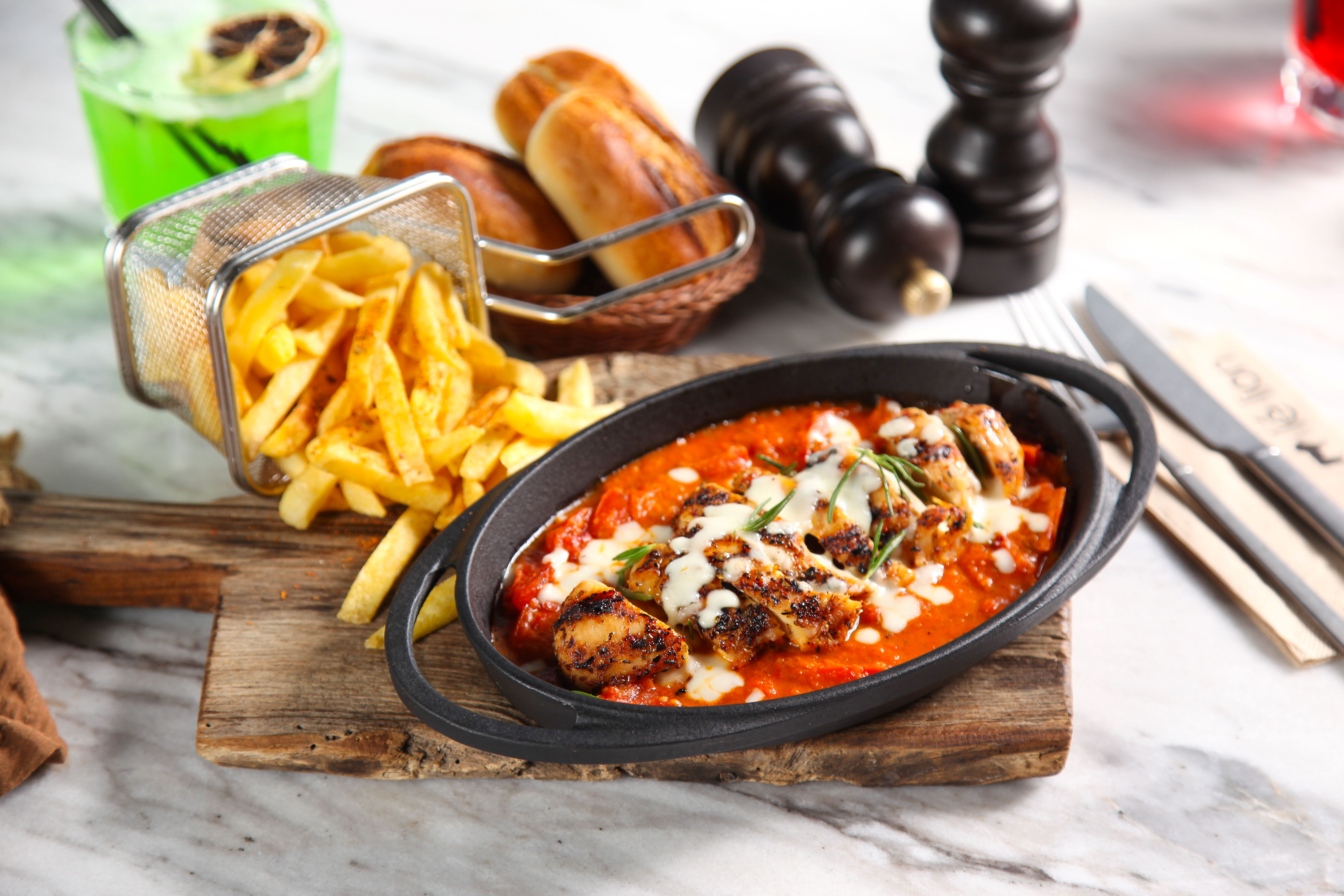 523,00200 gr tavuk mozerella peynirli tavuk cherry domates sosu patates kızartması ile