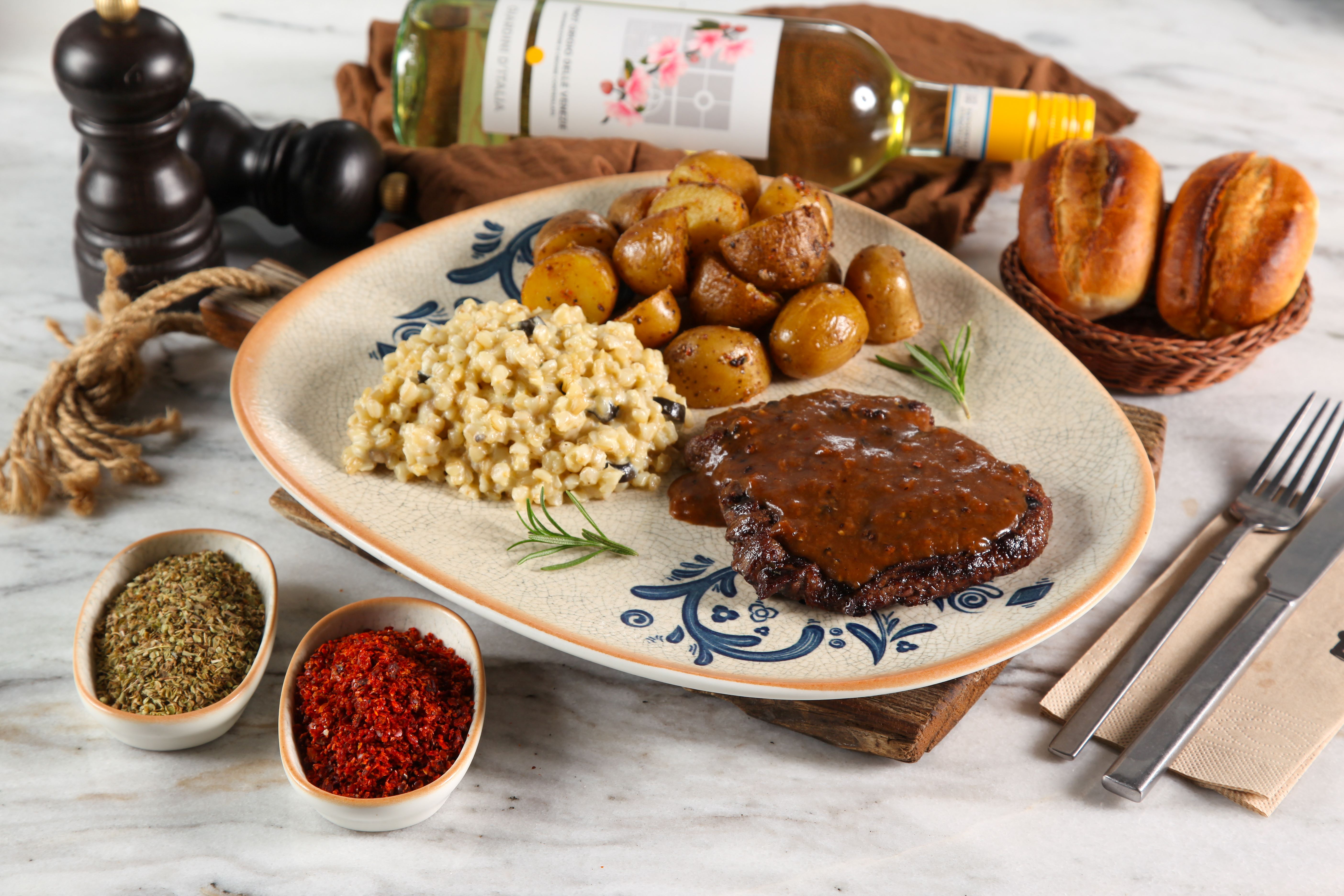 855,00200 gram dana bonfile cafede pari sos patates kızartması roka salatası