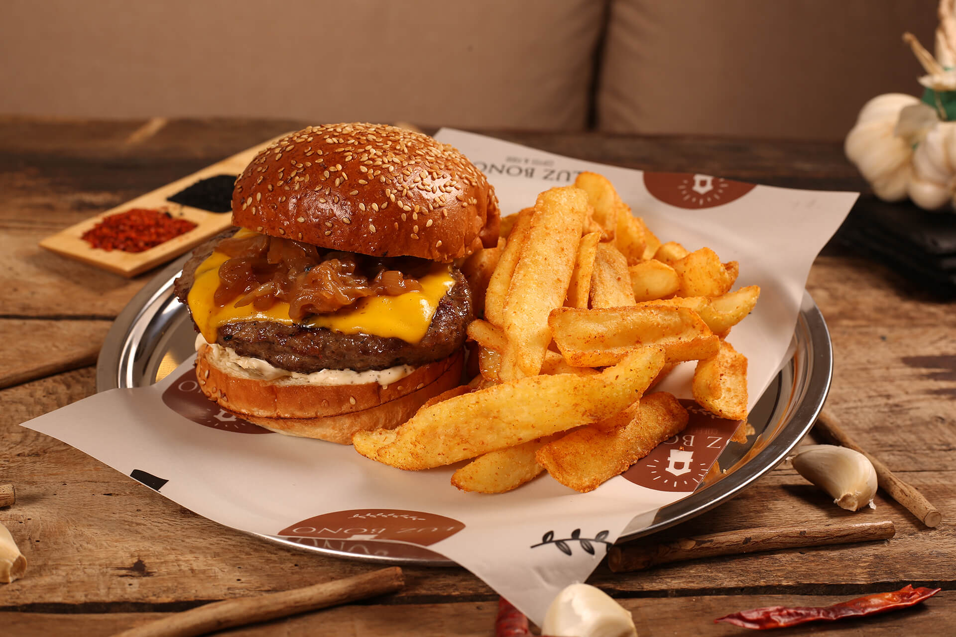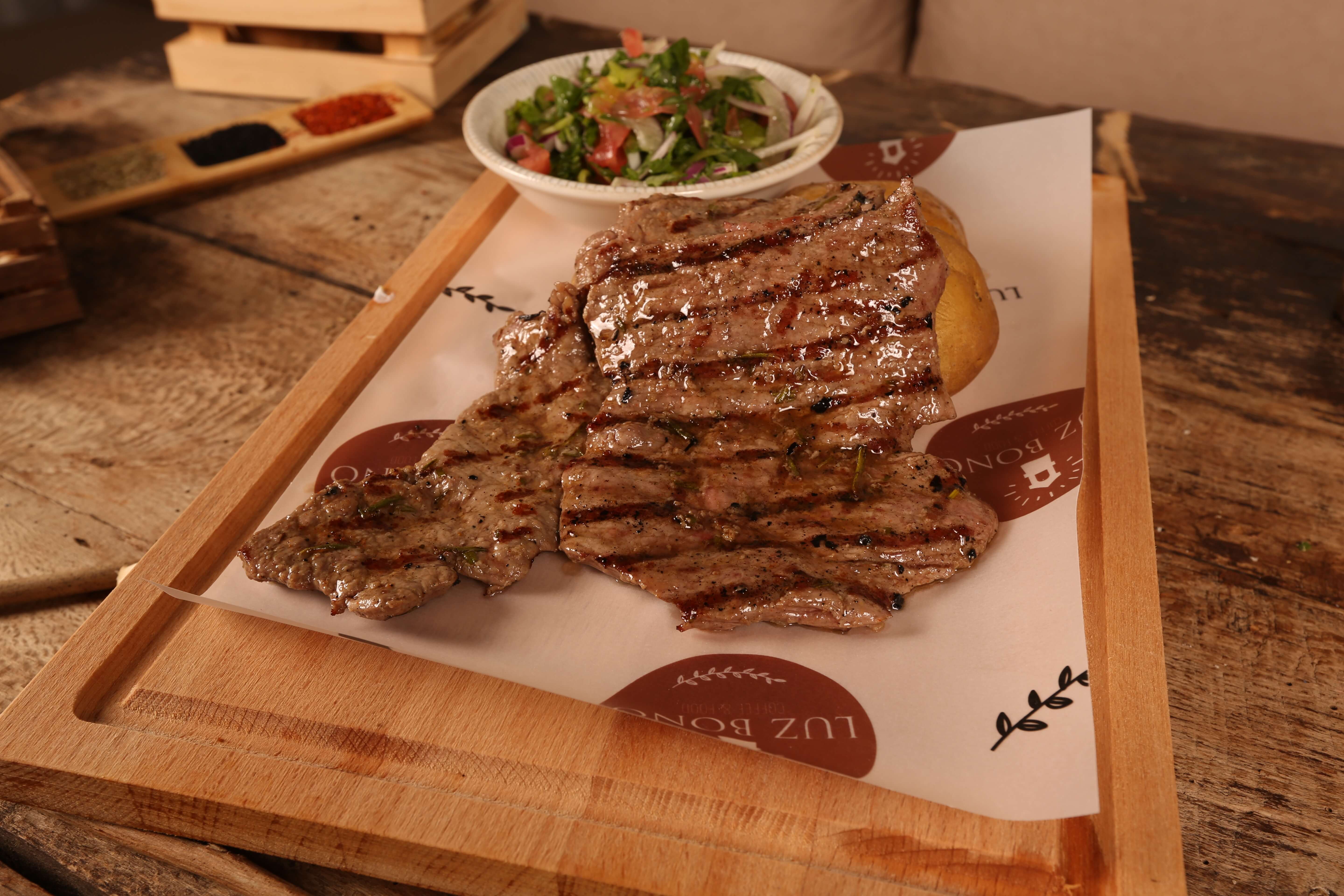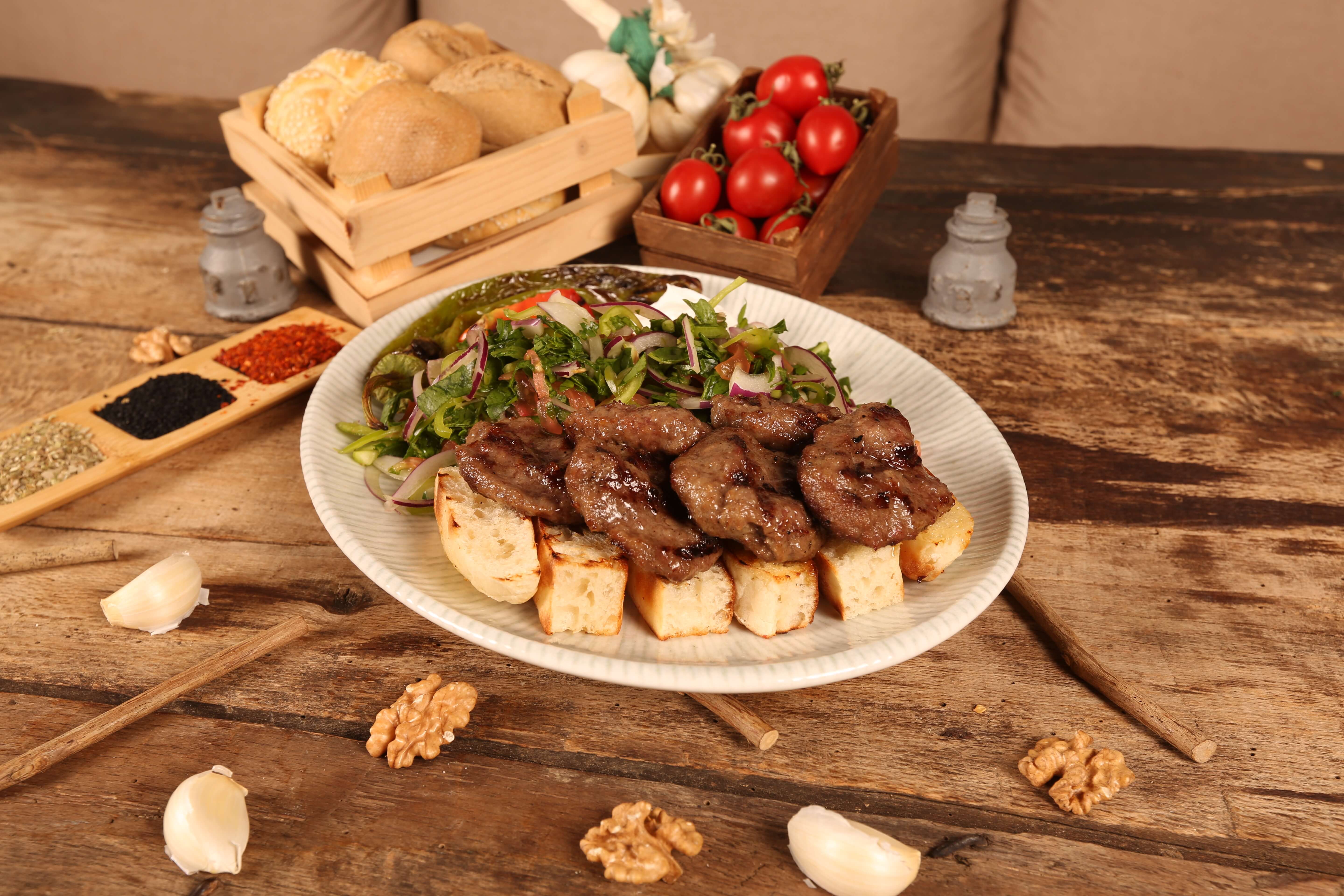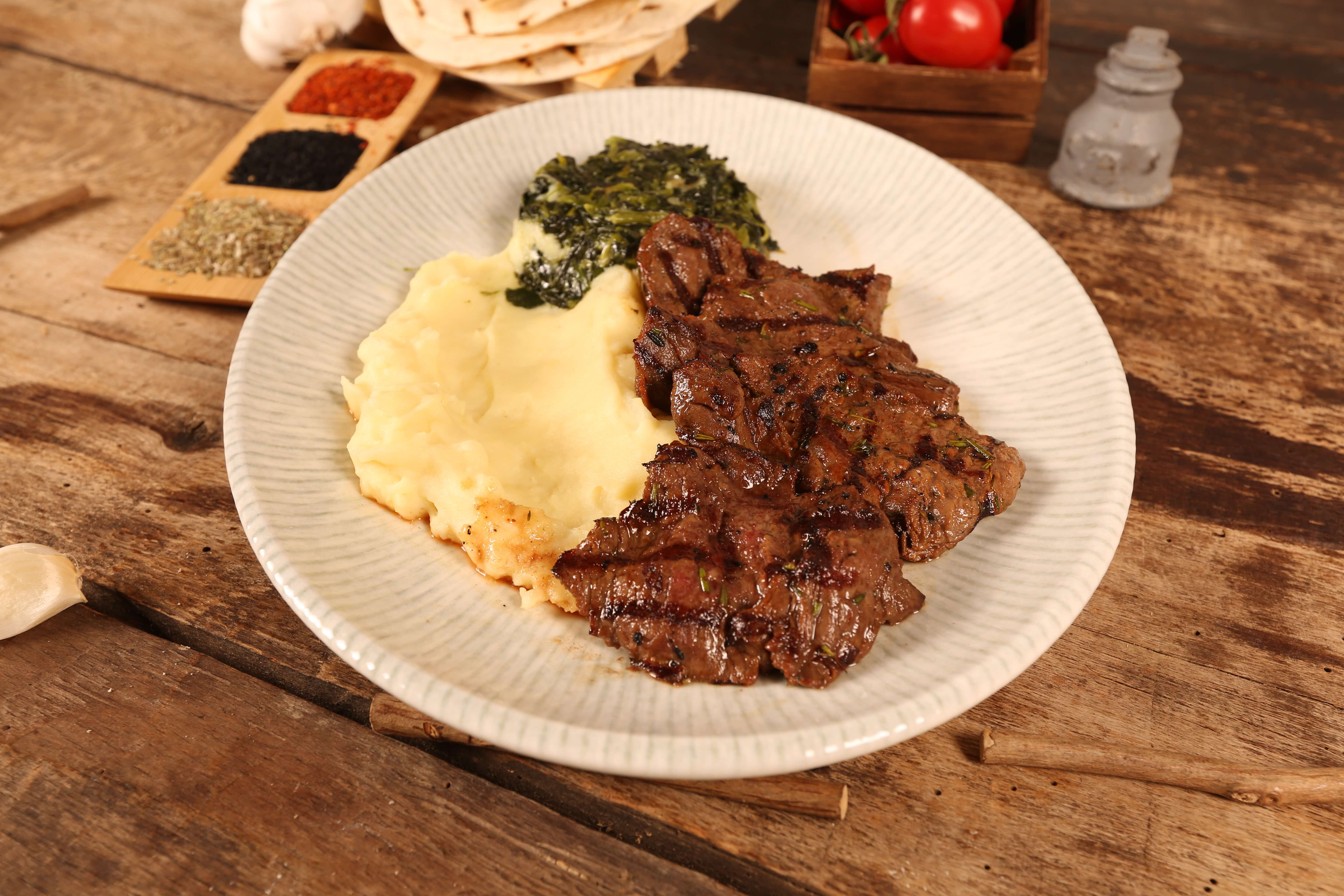 740,00200 gr dana bonfile*6 dilim bazlama ekmeği*patates püresi*soğanlı roka salatası